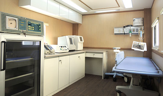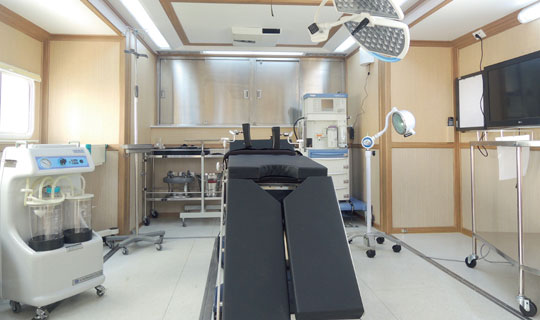 廣泰手術(shù)車通過層流凈化裝置達到艙內(nèi)環(huán)境萬級凈化標準,整車集成供氧、制氧系統(tǒng),安裝手術(shù)床、無影燈及其他手術(shù)專用儀器設(shè)備,在應(yīng)急情況下實施手術(shù)救援。