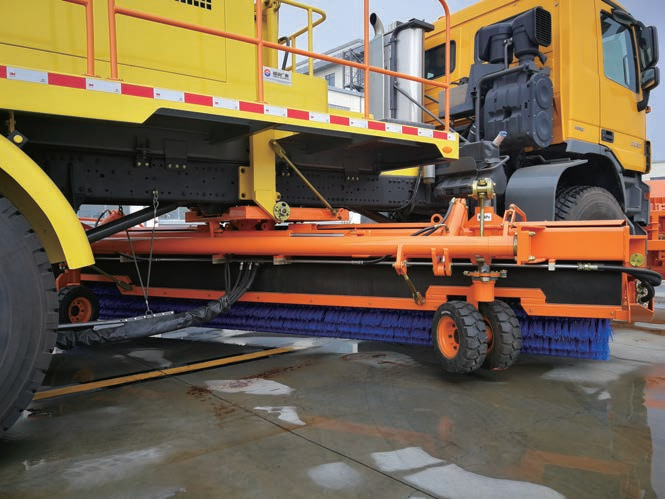 該類設(shè)備是通過向機(jī)場(chǎng)跑道及機(jī)場(chǎng)作業(yè)區(qū)的道面噴灑防(除)冰液,來達(dá)到使機(jī)場(chǎng)道面不結(jié)冰的目的,進(jìn)而保障機(jī)場(chǎng)的正常使用。主要由汽車底盤、液路系統(tǒng)、液壓系統(tǒng)、電氣控制系統(tǒng)、擺臂系統(tǒng)、液罐系統(tǒng)等組成。